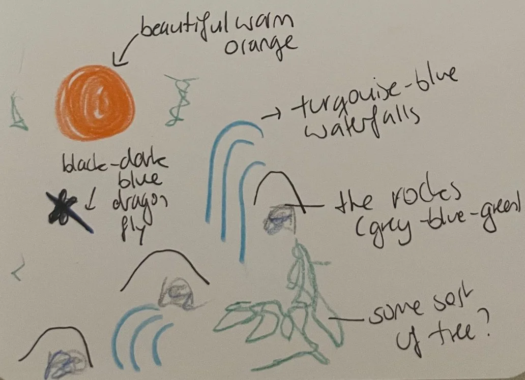 “I'm just coming back to Amsterdam from having spent 2 months on the beautiful and magical island of Samothraki. I would love (as my first tattoo ever btw! :D) to carry the vibrations of the island with me. The magic, the beauty, the creativity, the love, devotion, joy - just this pure LIFE from this island. A couple of items I would love to come back in the tattoo: the Sun, the Water(falls), the Rocks, the Trees (or some Green) and the amazing Dragonflies. “